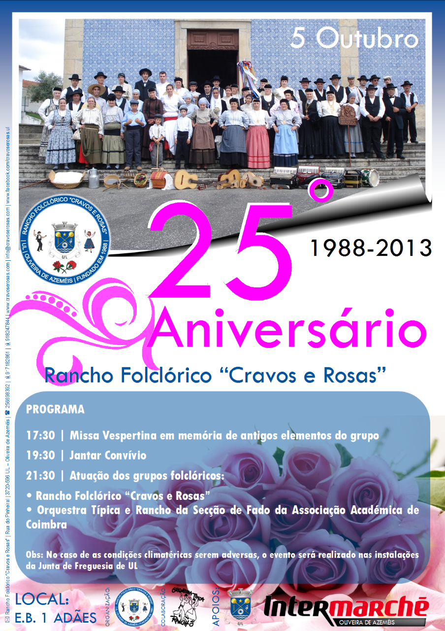 25.º Aniversário do Rancho Folclórico "Cravos e Rosas" de Santa Maria de UL > Local: Sede do R.F.C.R. (Escola E.B. 1 de Adães - UL)